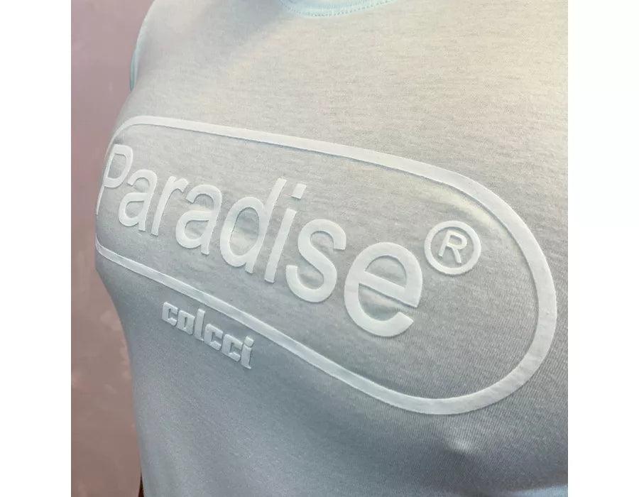 Estampa no busto , gola redonda, manga curta e barra reta.